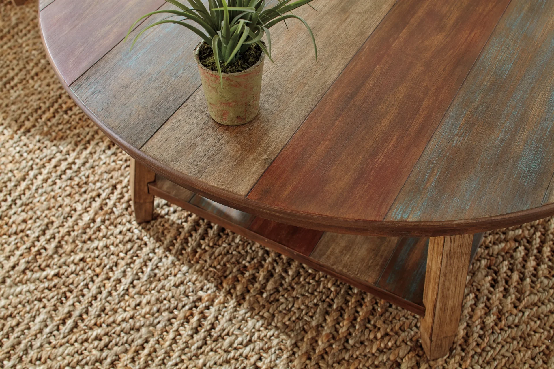 Bring a fresh take on country charm to your space with this occasional table set. Rustic Mexican styling and a plank-inspired finish showcase warm maroon and tan tones. Designed for small spaces, each table includes a display shelf for added organization.